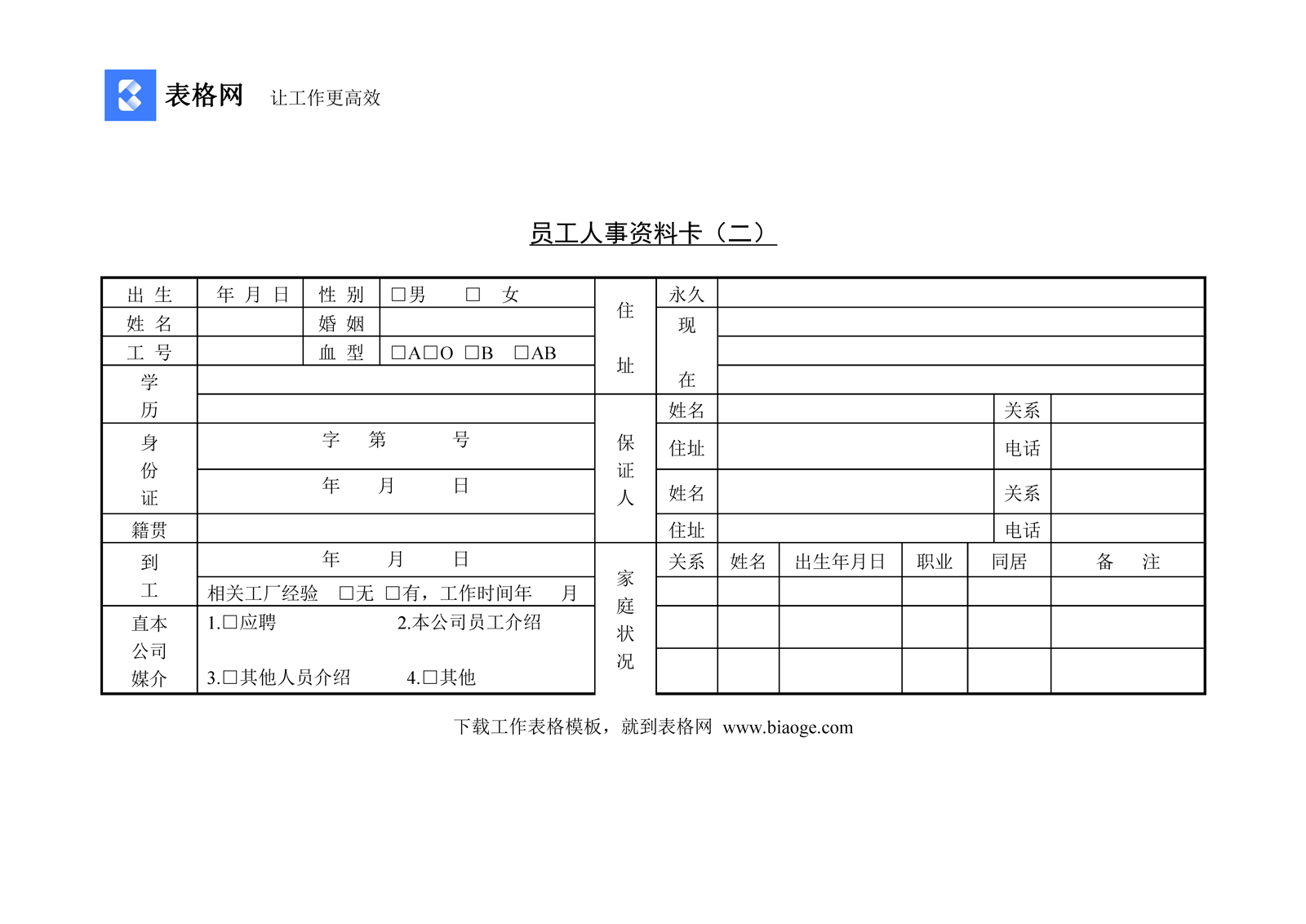 员工人事资料卡(二)