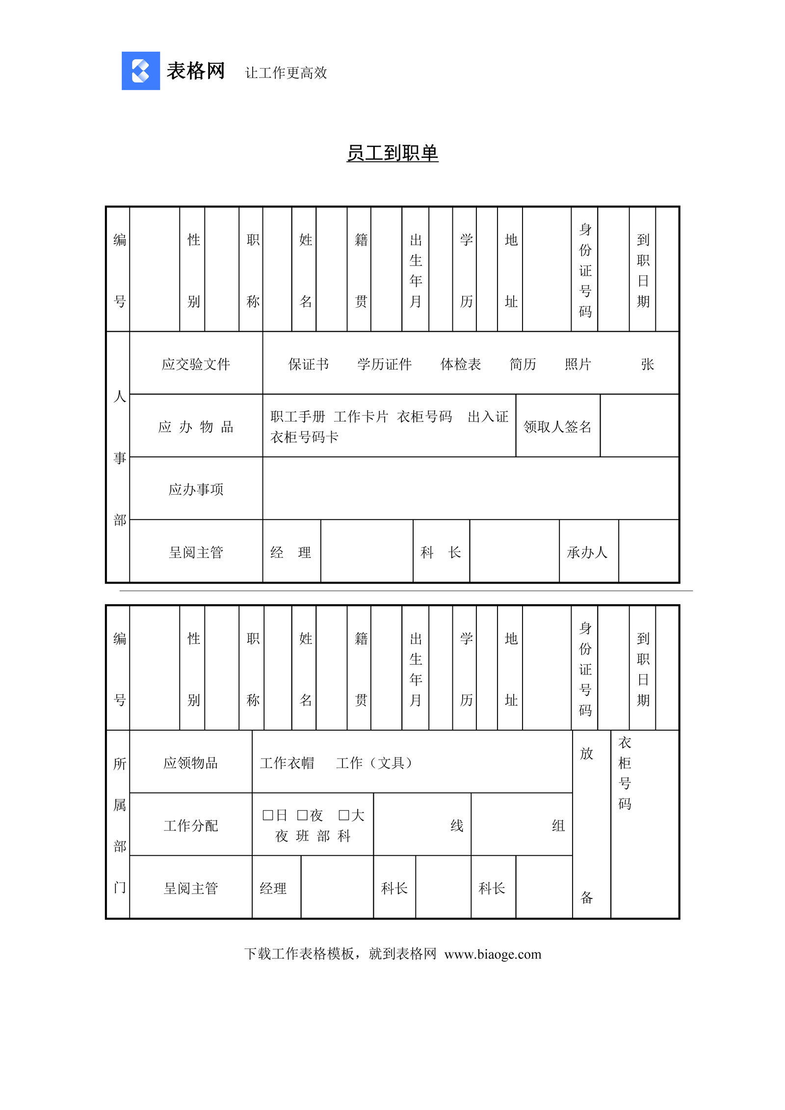 员工到职单