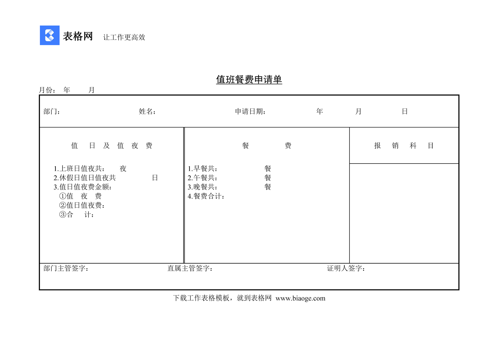 值班餐费申请单