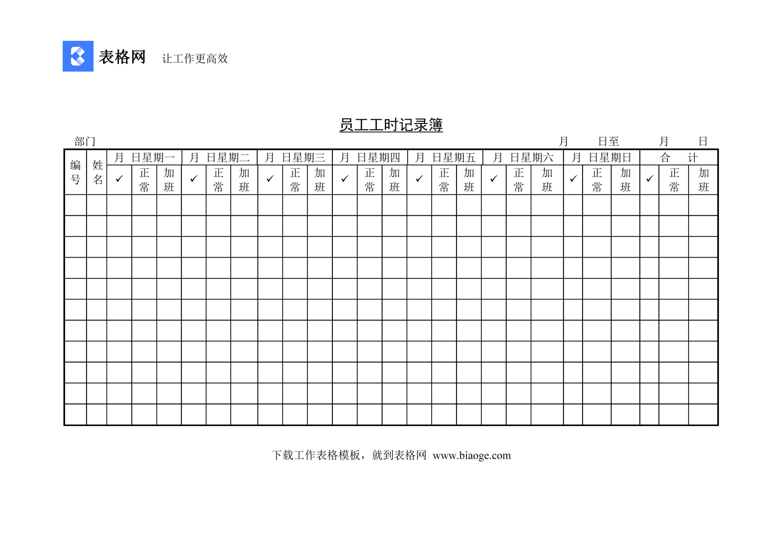 文档介绍:员工工时记录簿
