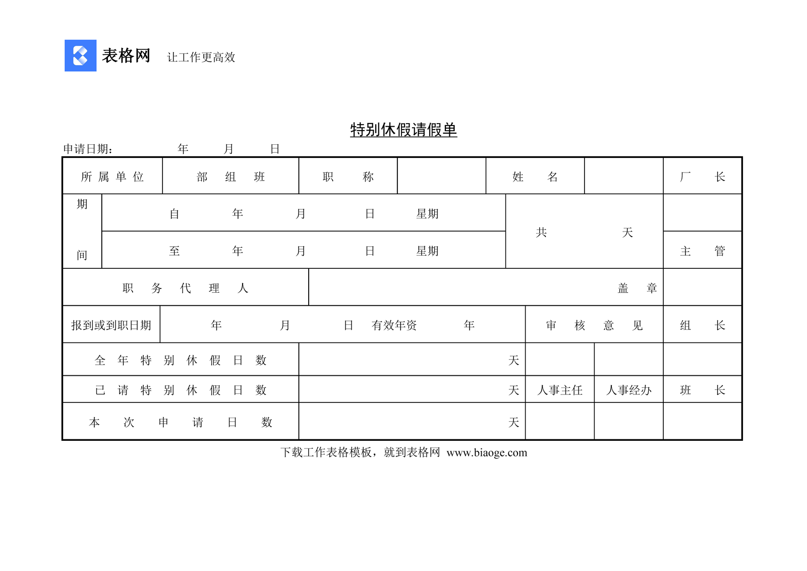 特别休假请假单