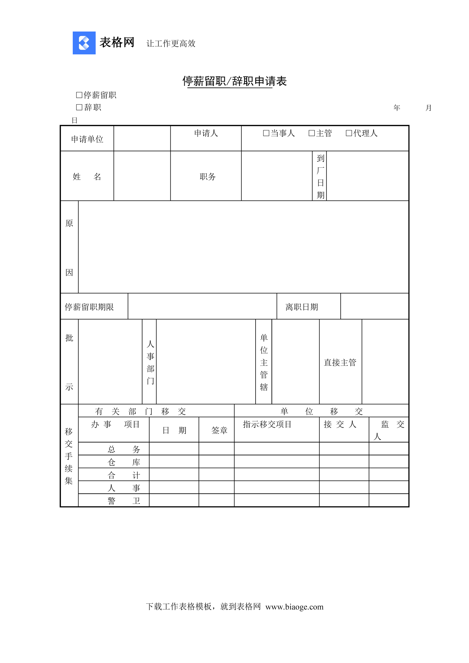 停薪留职辞职申请表