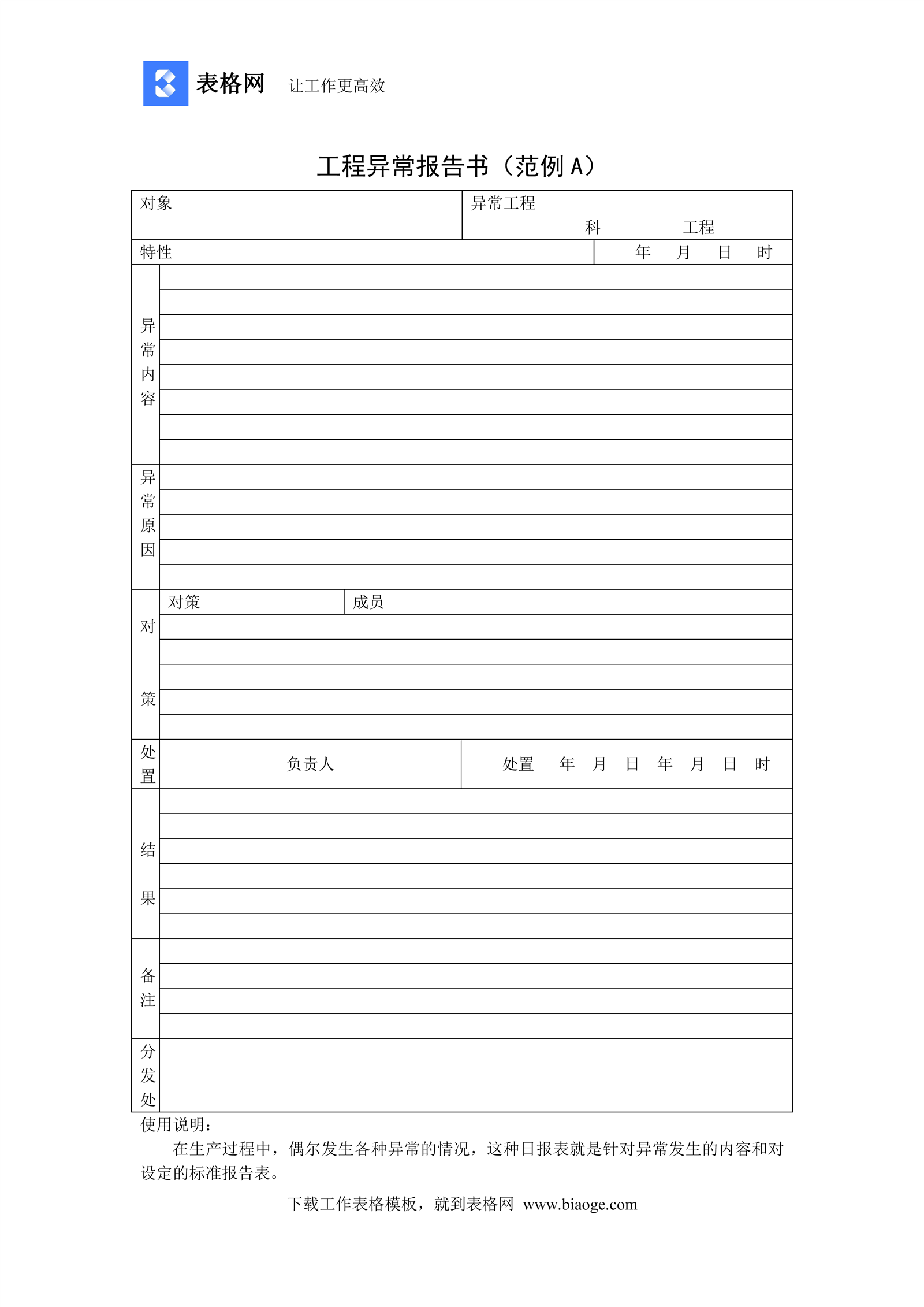 工程异常报告书(范例A)