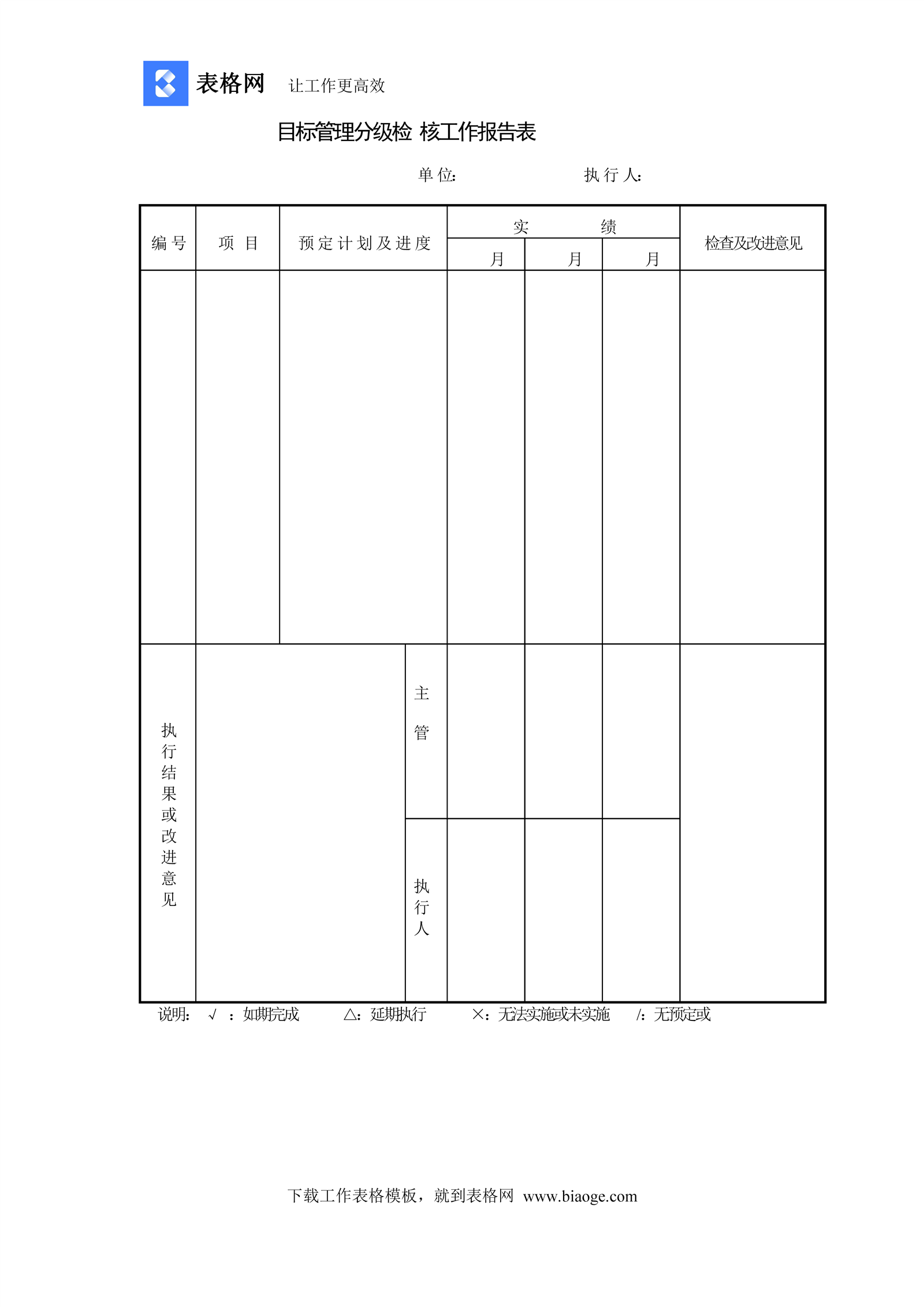 目标管理分级检 核工作报告表