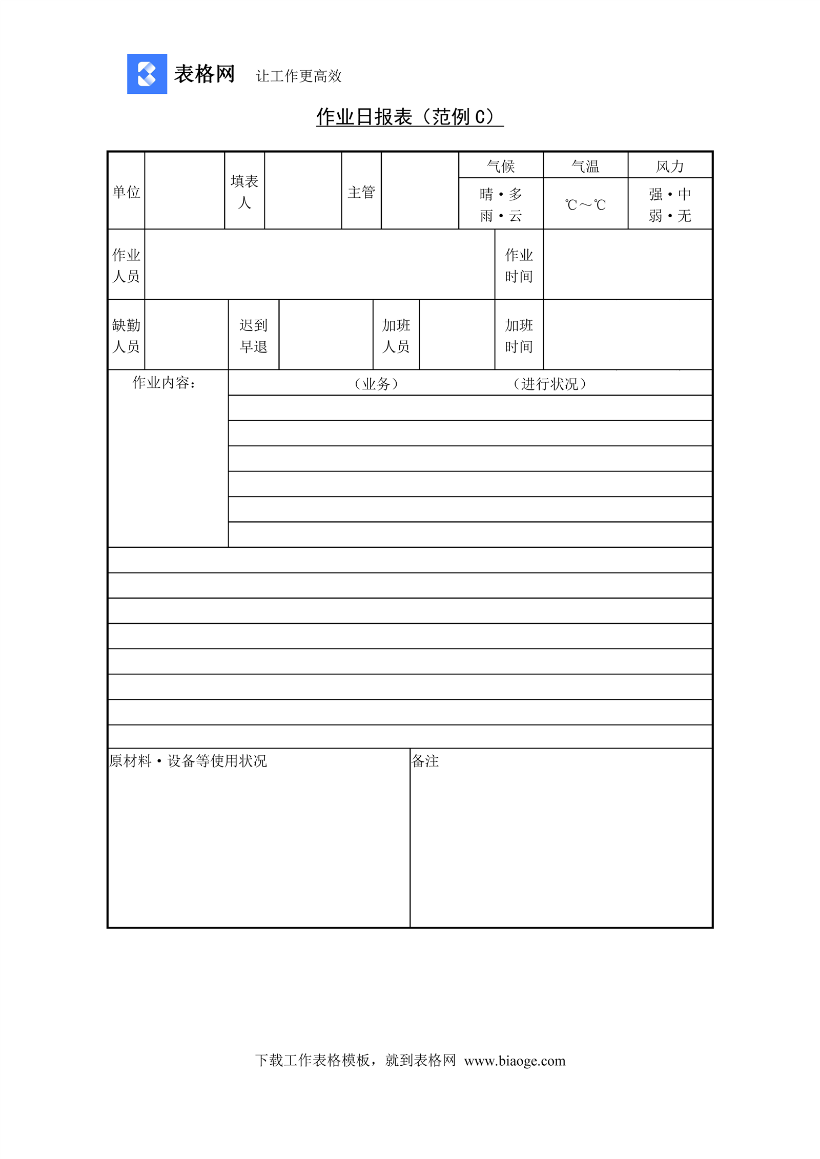 文档介绍:作业日报表(范例C)