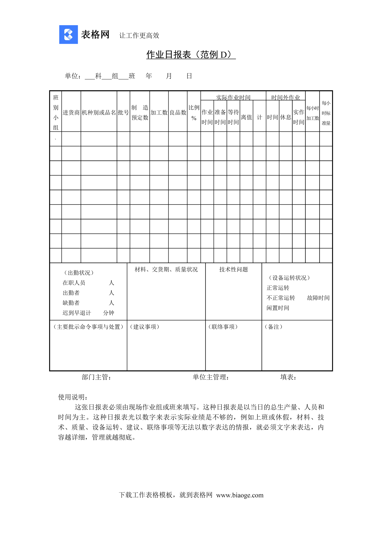 作业日报表(范例D)