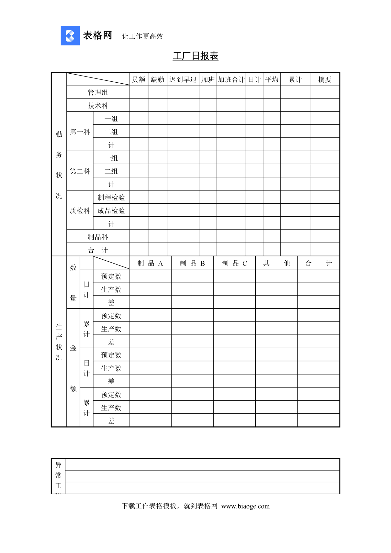 工厂日报表