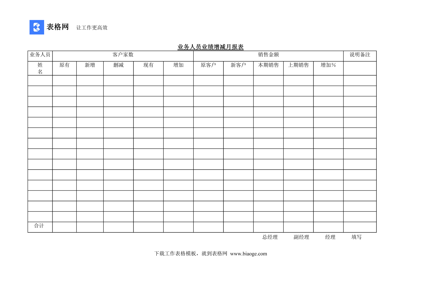 业务人员业绩增减月报表