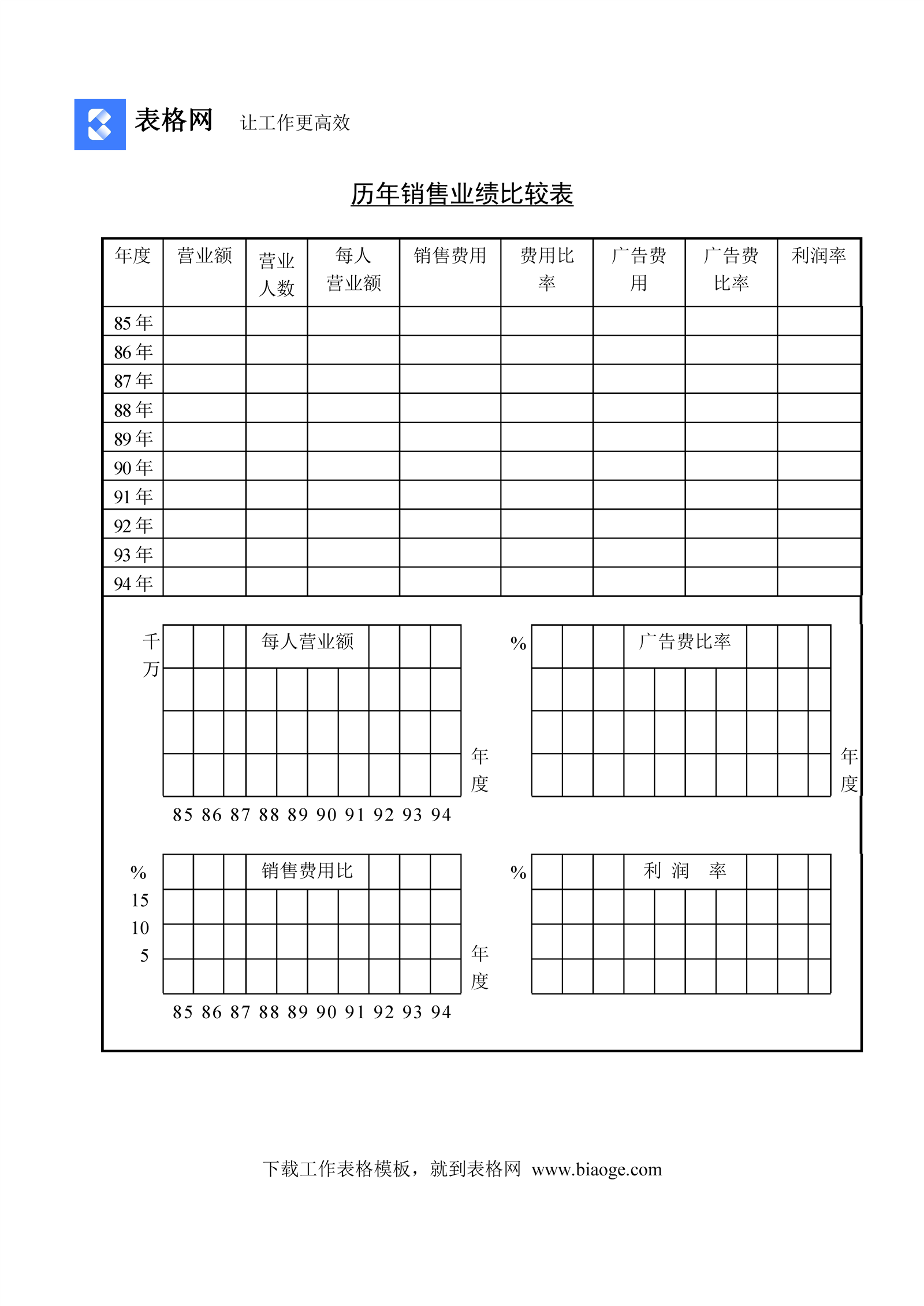 历年销售业绩比较表