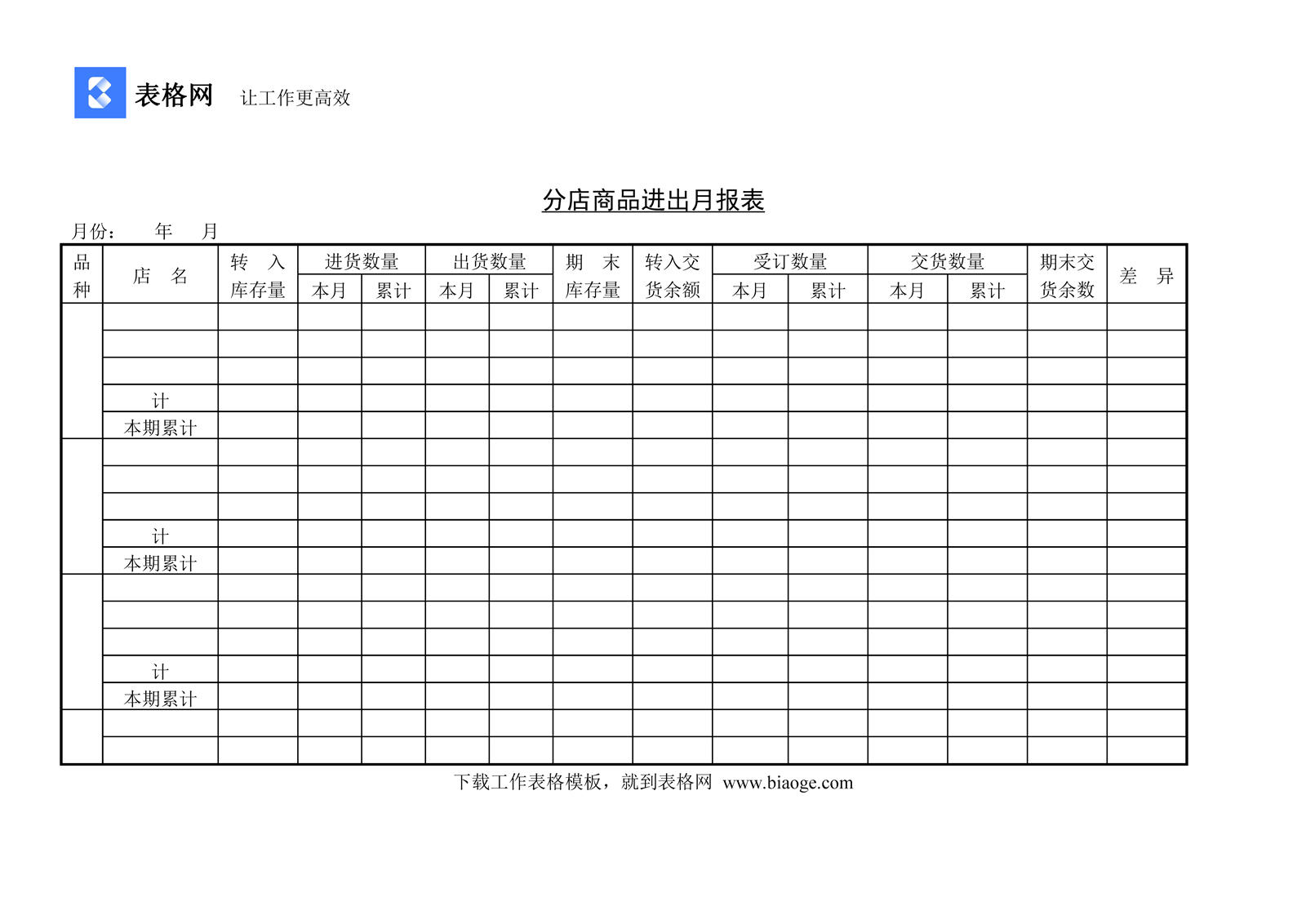 分店商品进出月报表