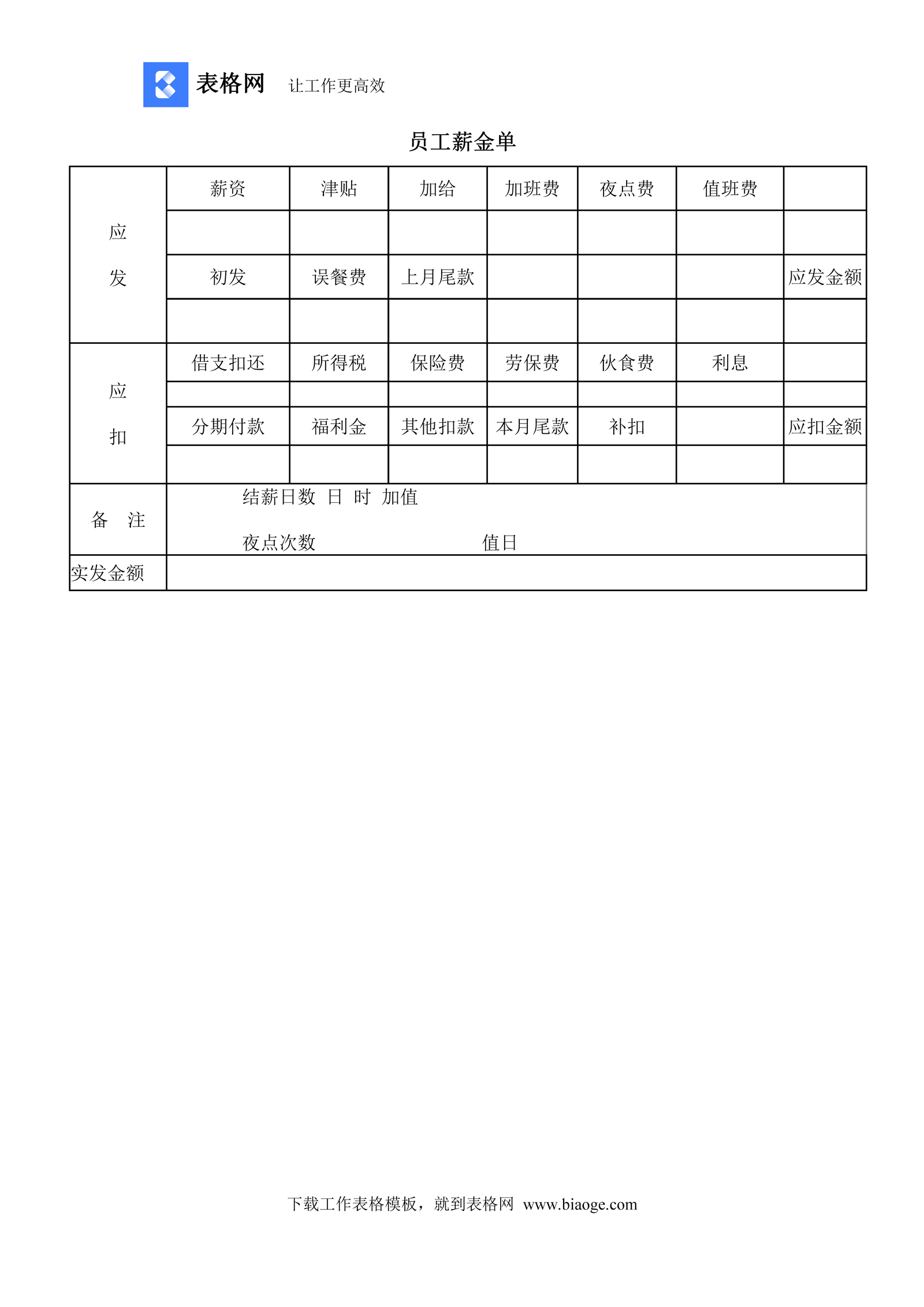 员工薪金单