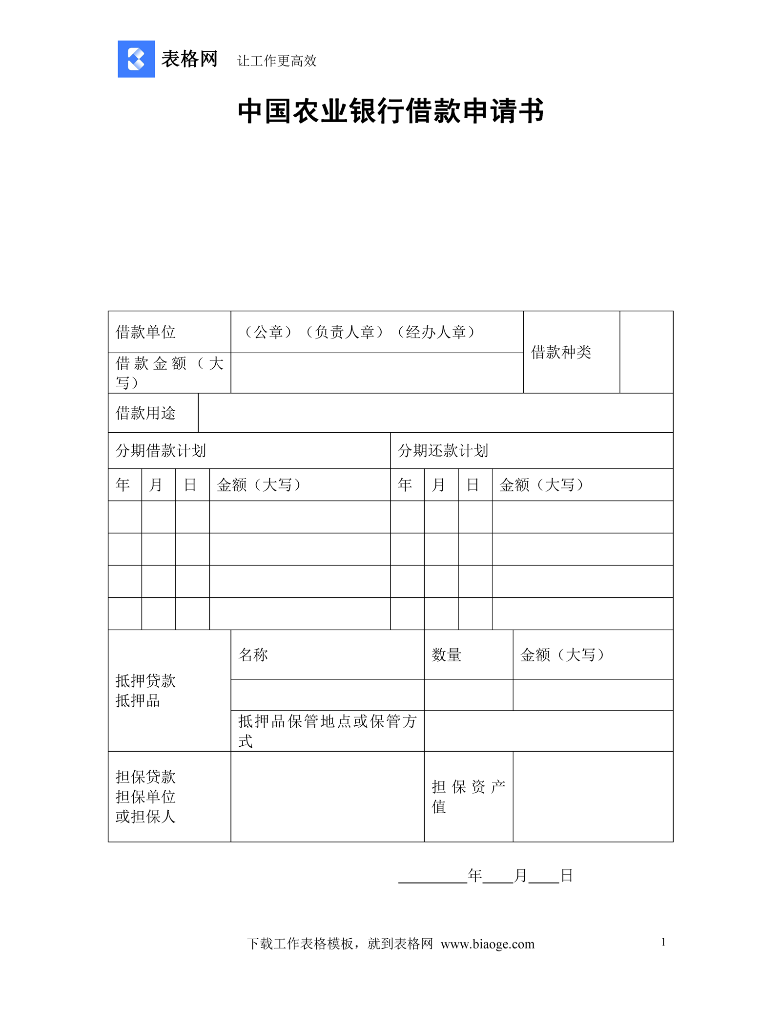 中国农业银行借款申请书