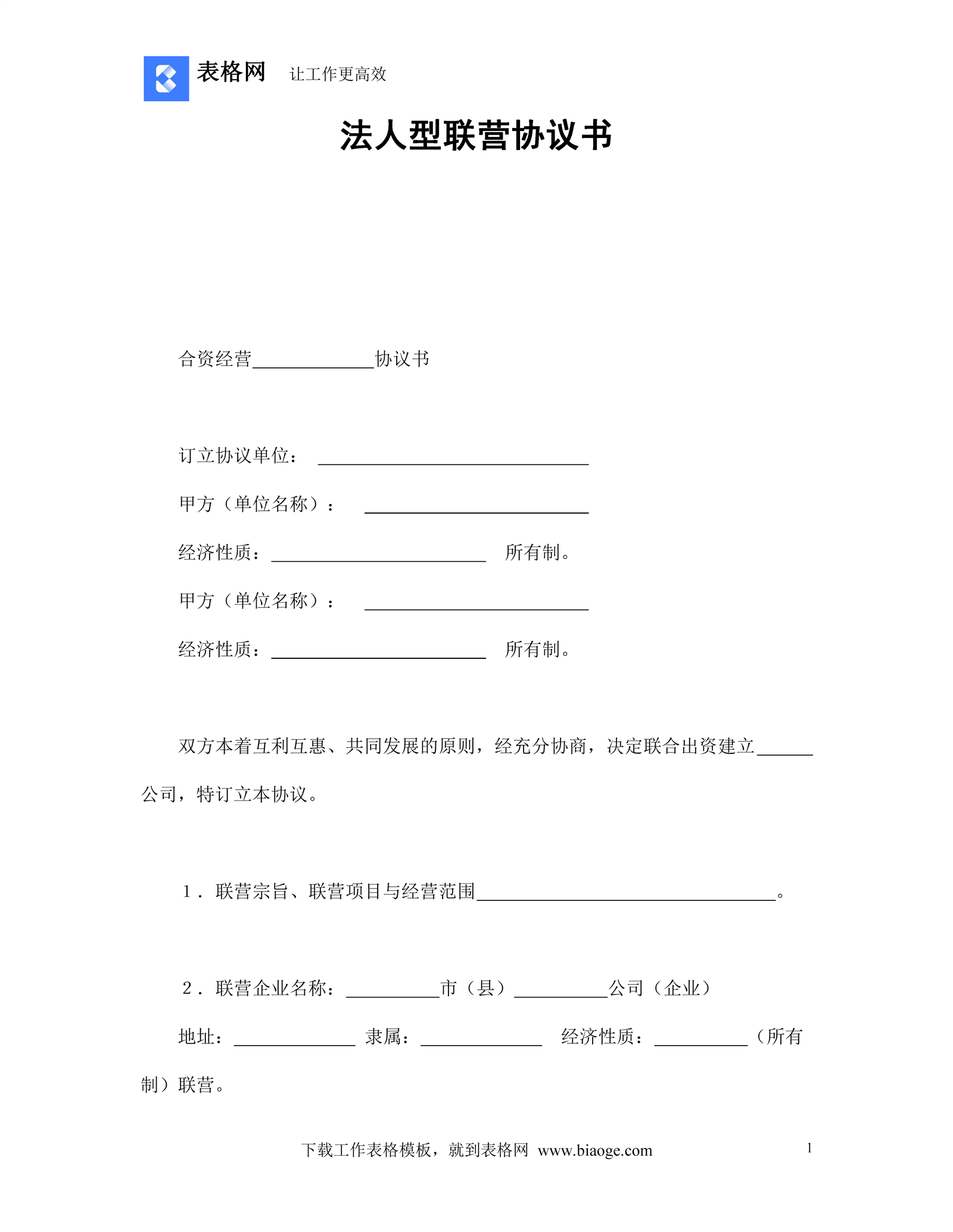 法人型联营协议书