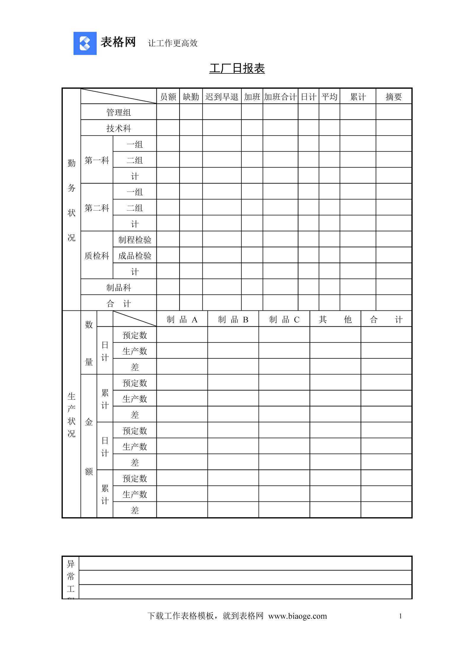 工厂日报表