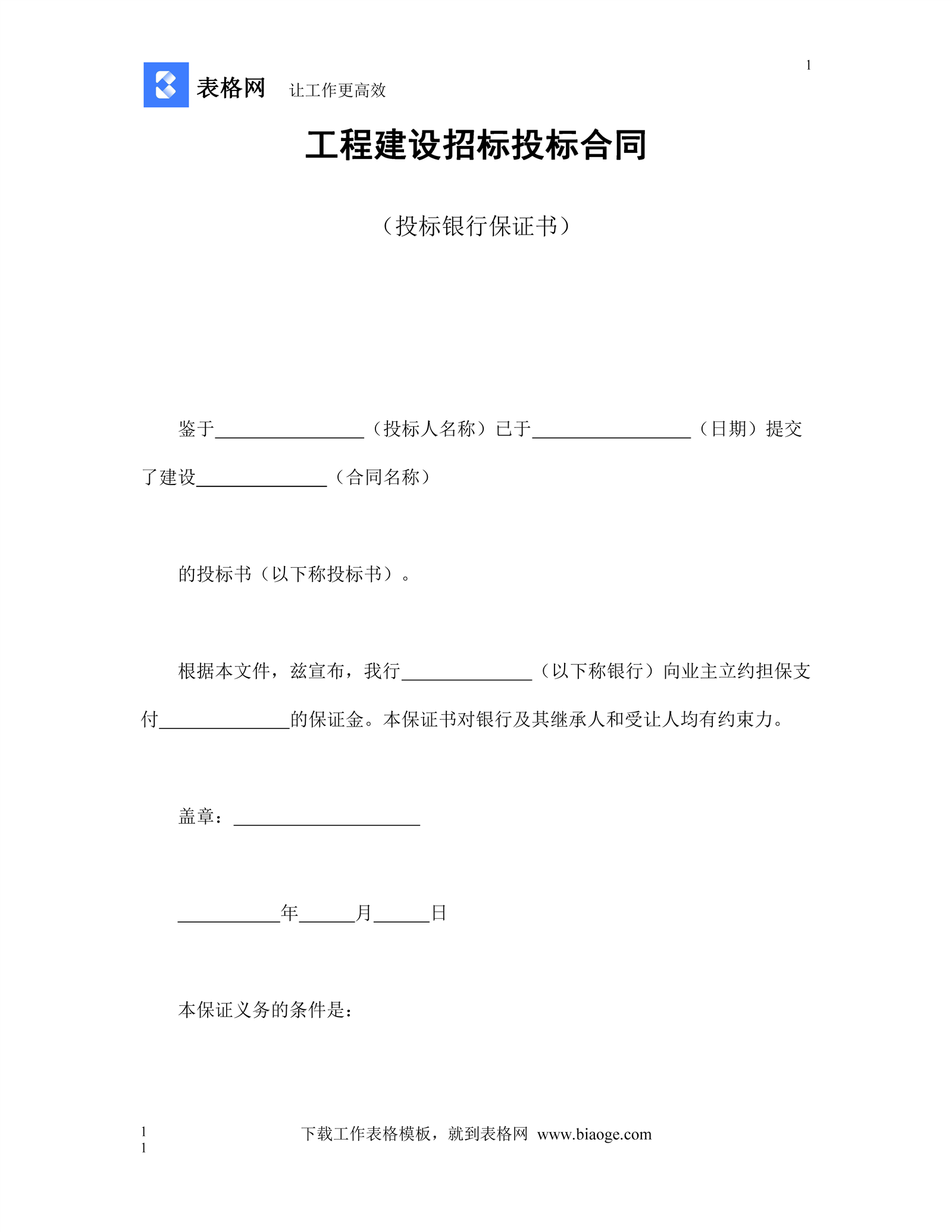 工程建设招标投标合同(投标银行保证书)
