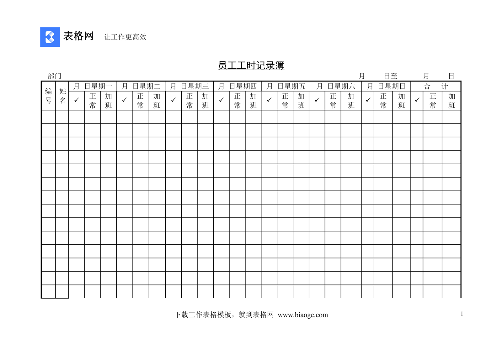 文档介绍:员工工时记录簿