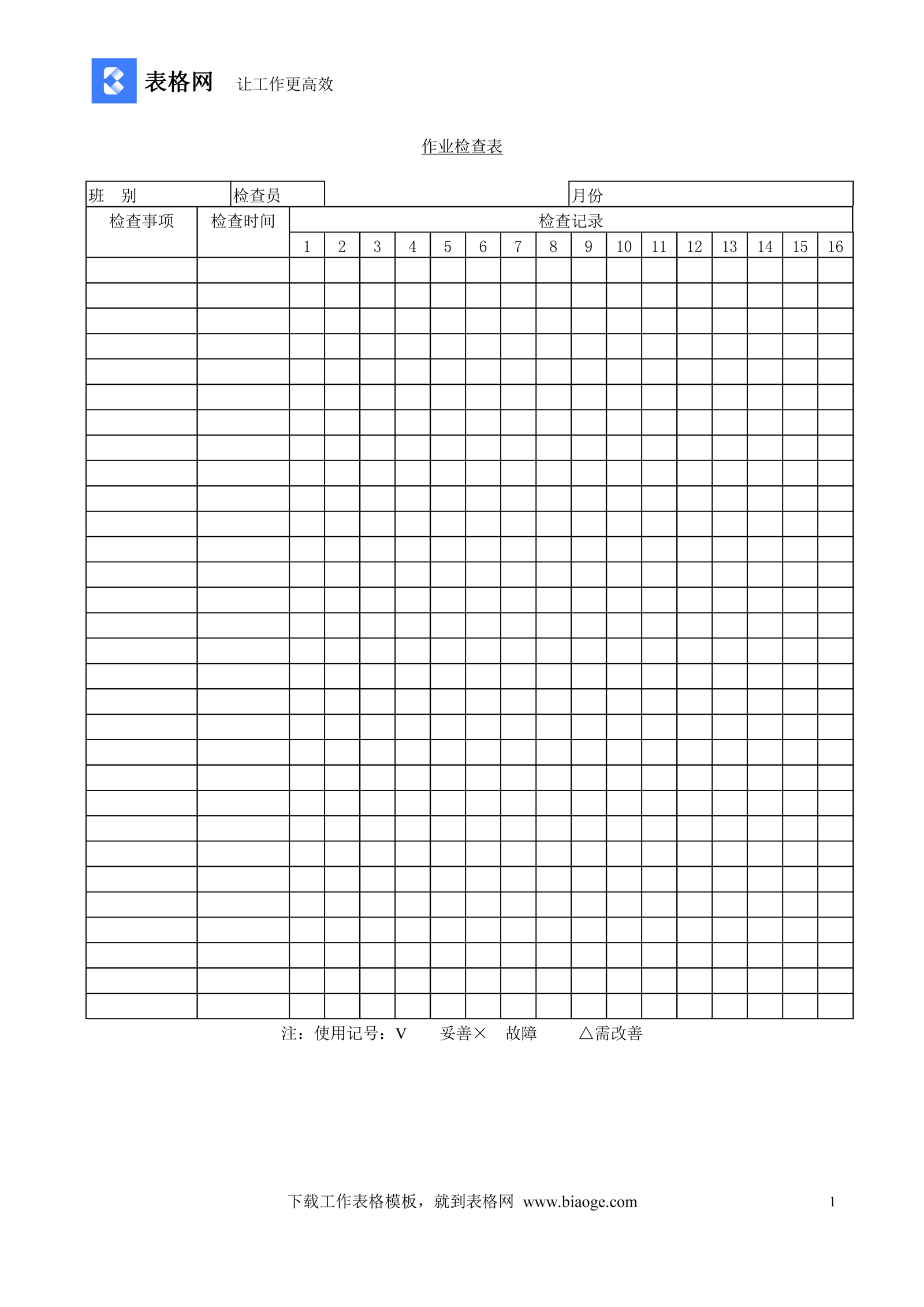 作业检查表