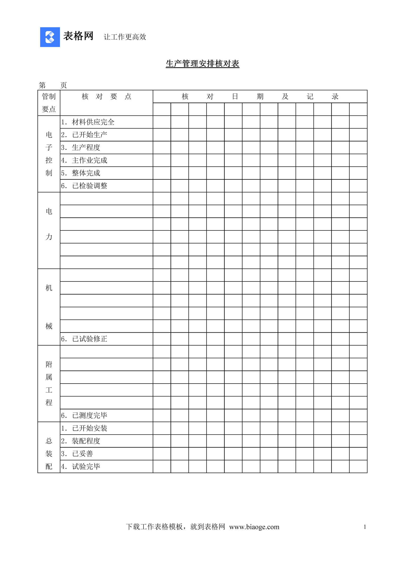 生产管理安排核对表