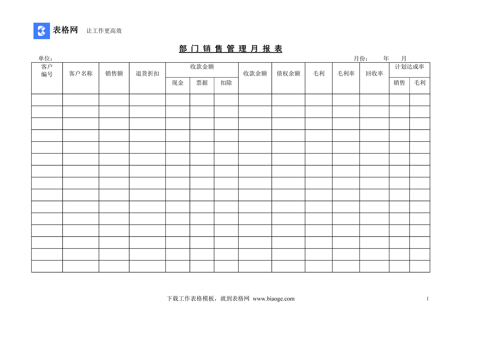 - 文档介绍:部 门 销 售 管 理 月 报 表