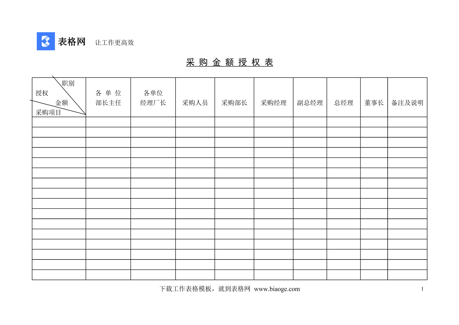文档介绍:采购金额授权表
