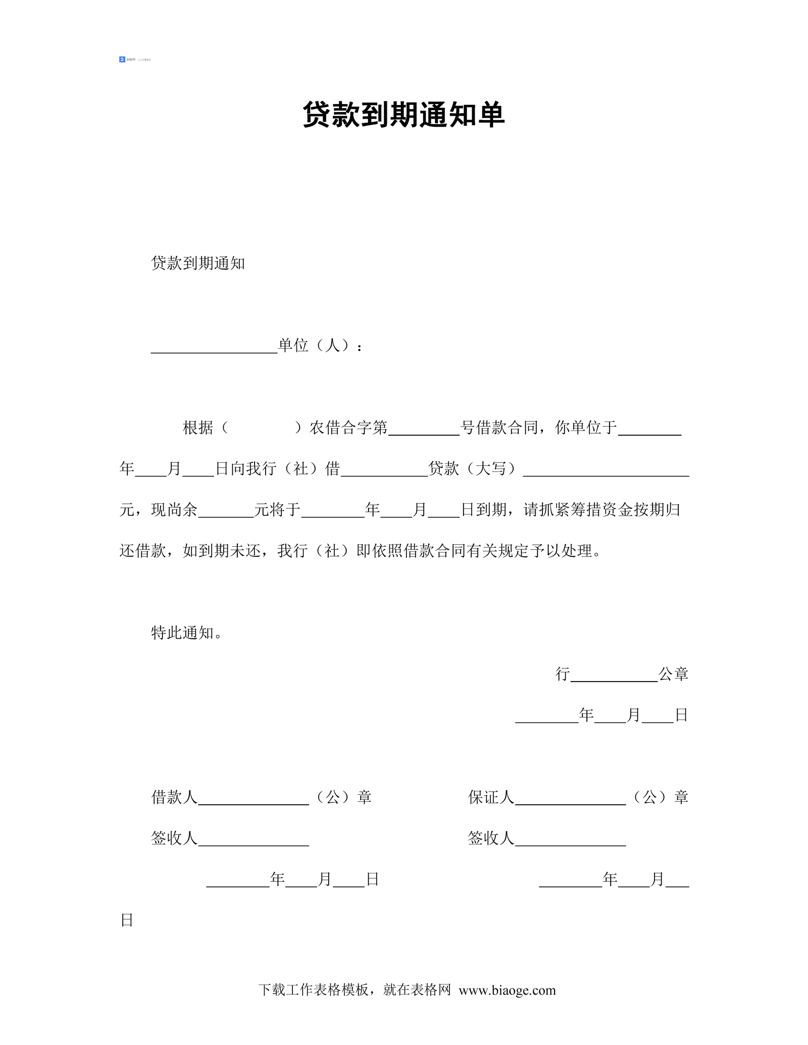 贷款到期通知单