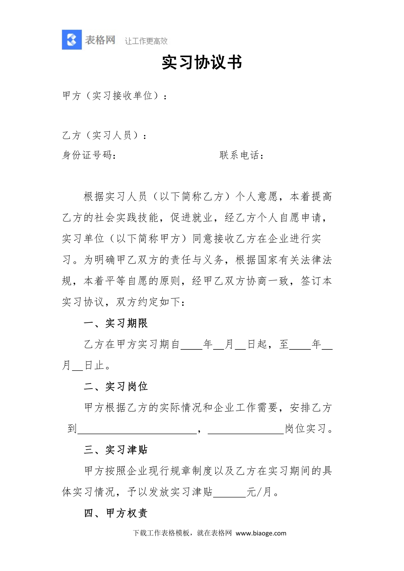 实习协议范本