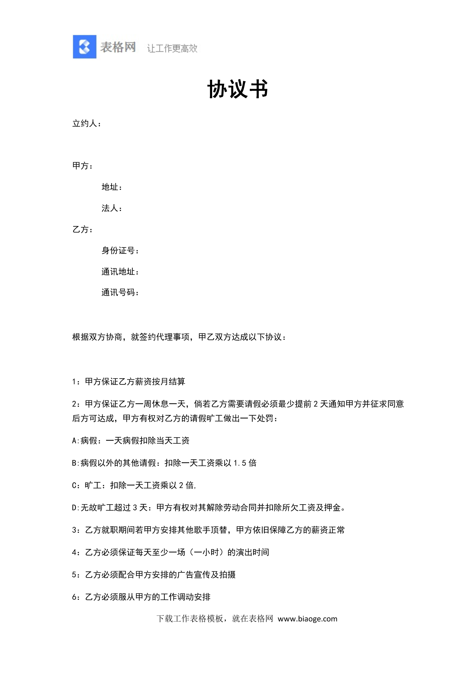 艺人签约协议书