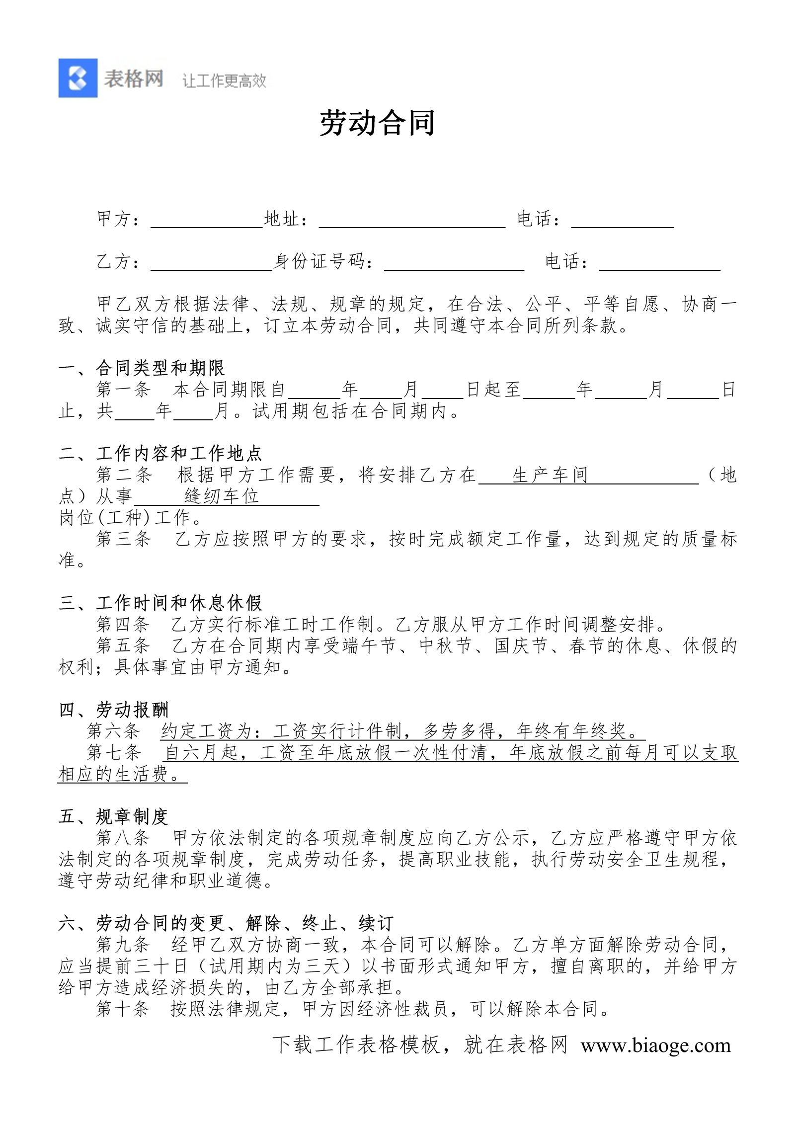 文档介绍:服装公司劳动合同书(缝纫车工)