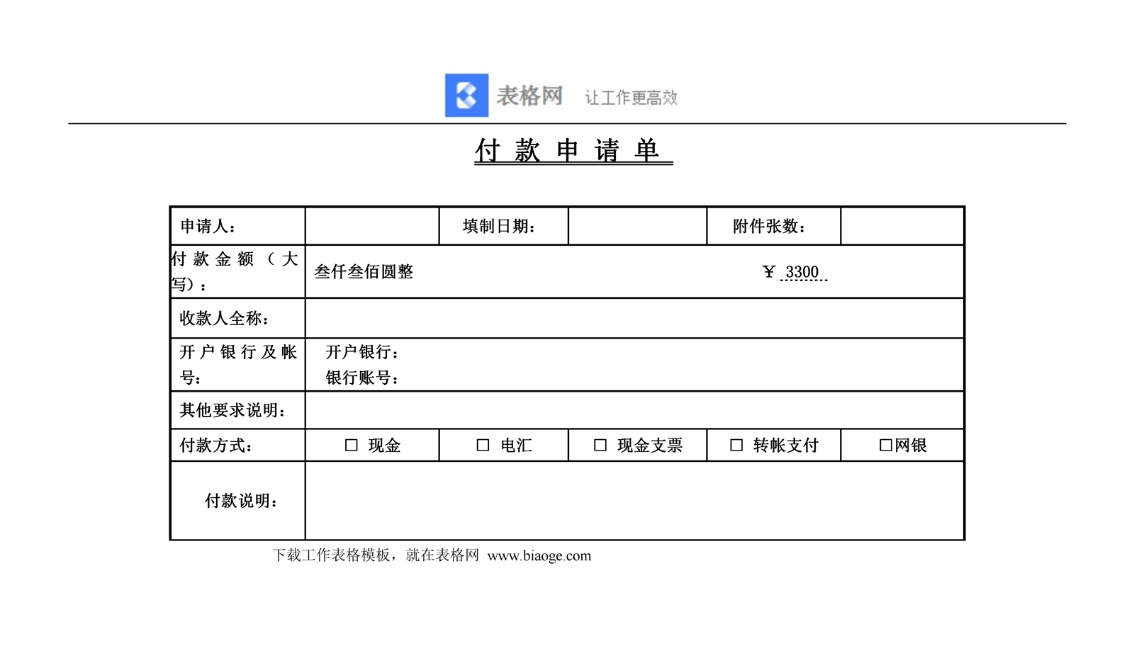 企业付款申请单Zr2