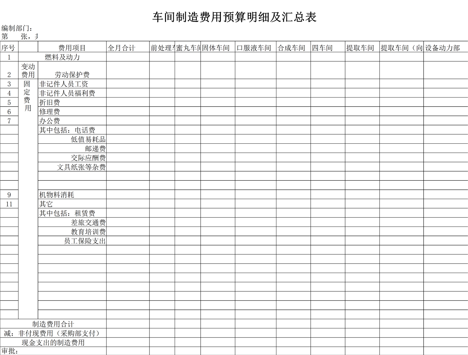 车间制造费用预算明细及汇总表D9P