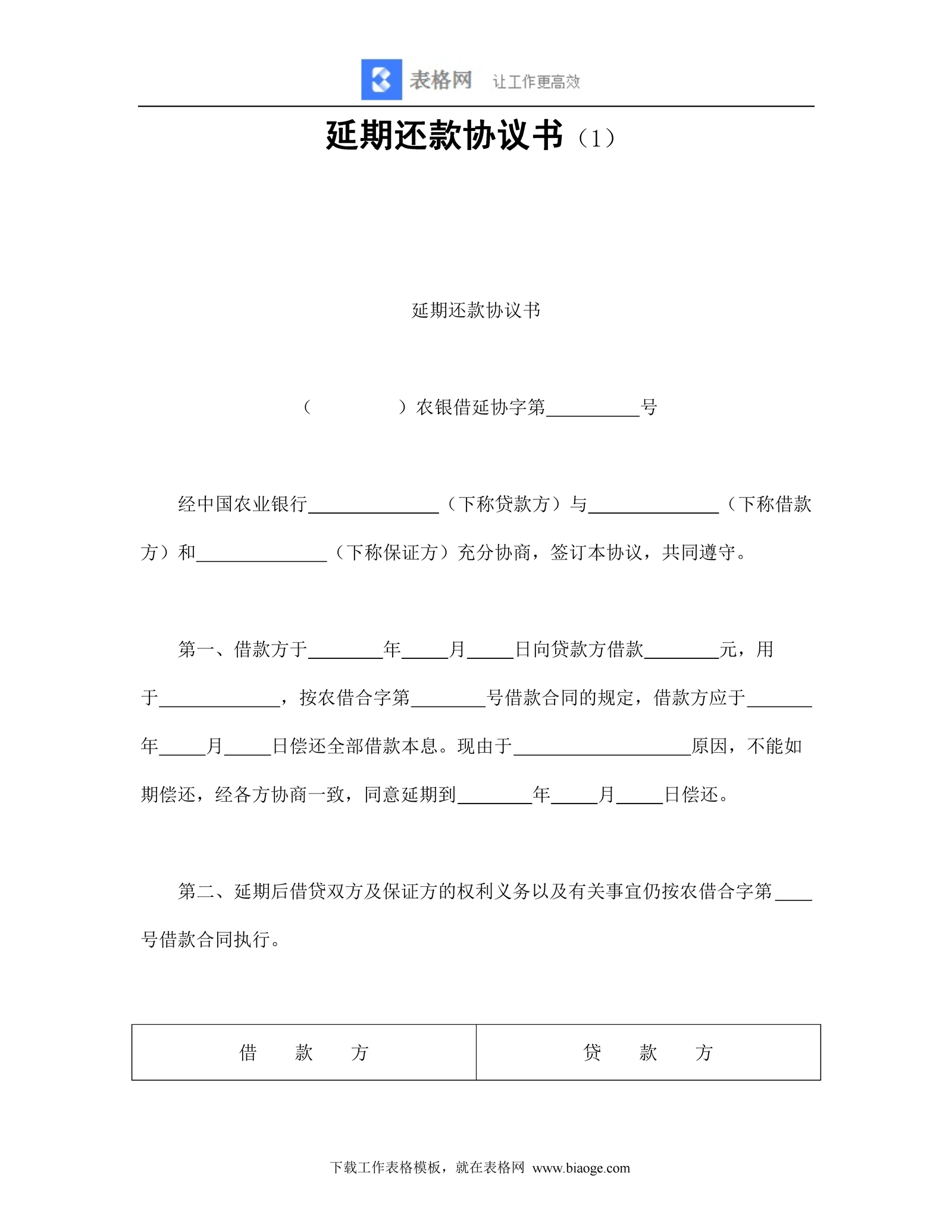 延期还款协议书(1wwp