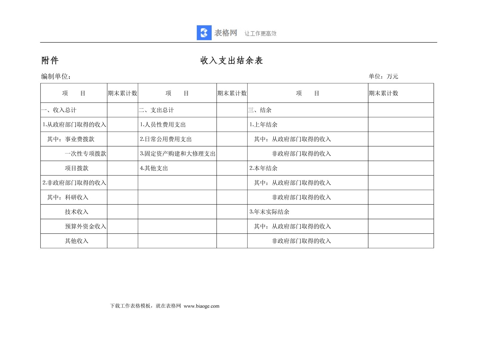 收入支出结余表7KX