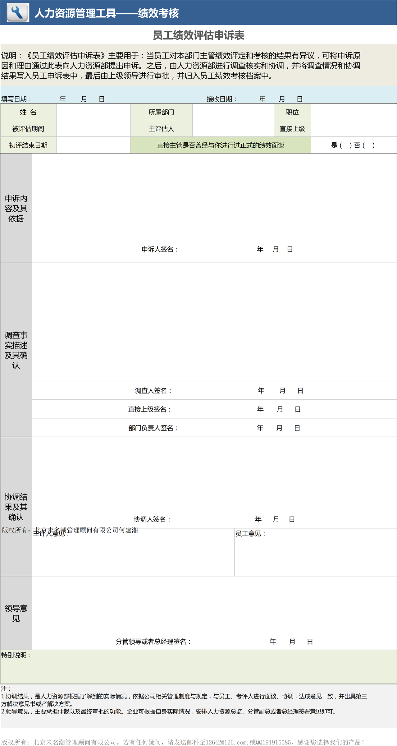 员工绩效评估申诉表