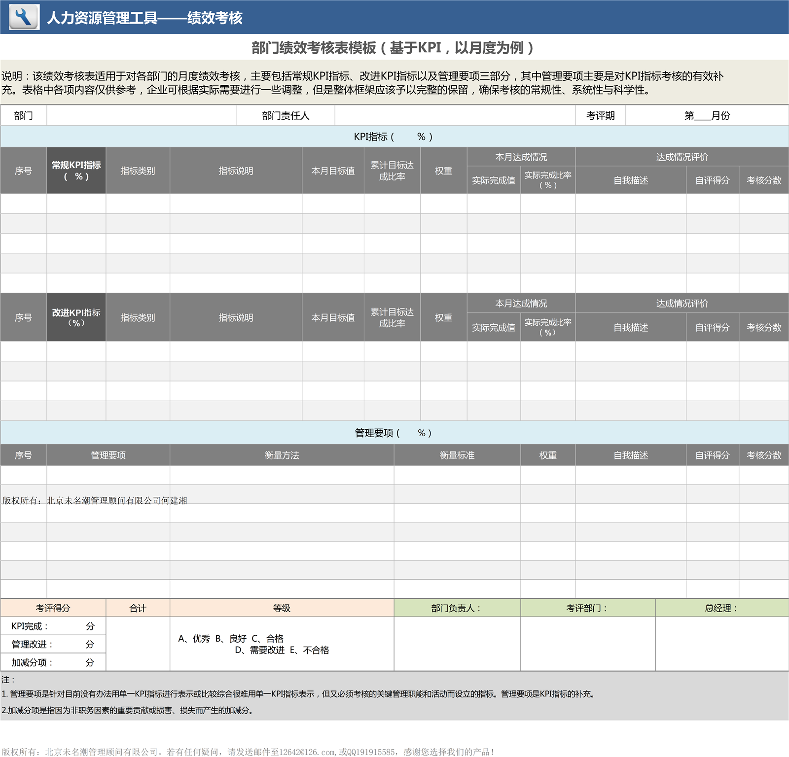 - 文档介绍:部门绩效考核表模板(基于KPI以月度为例
