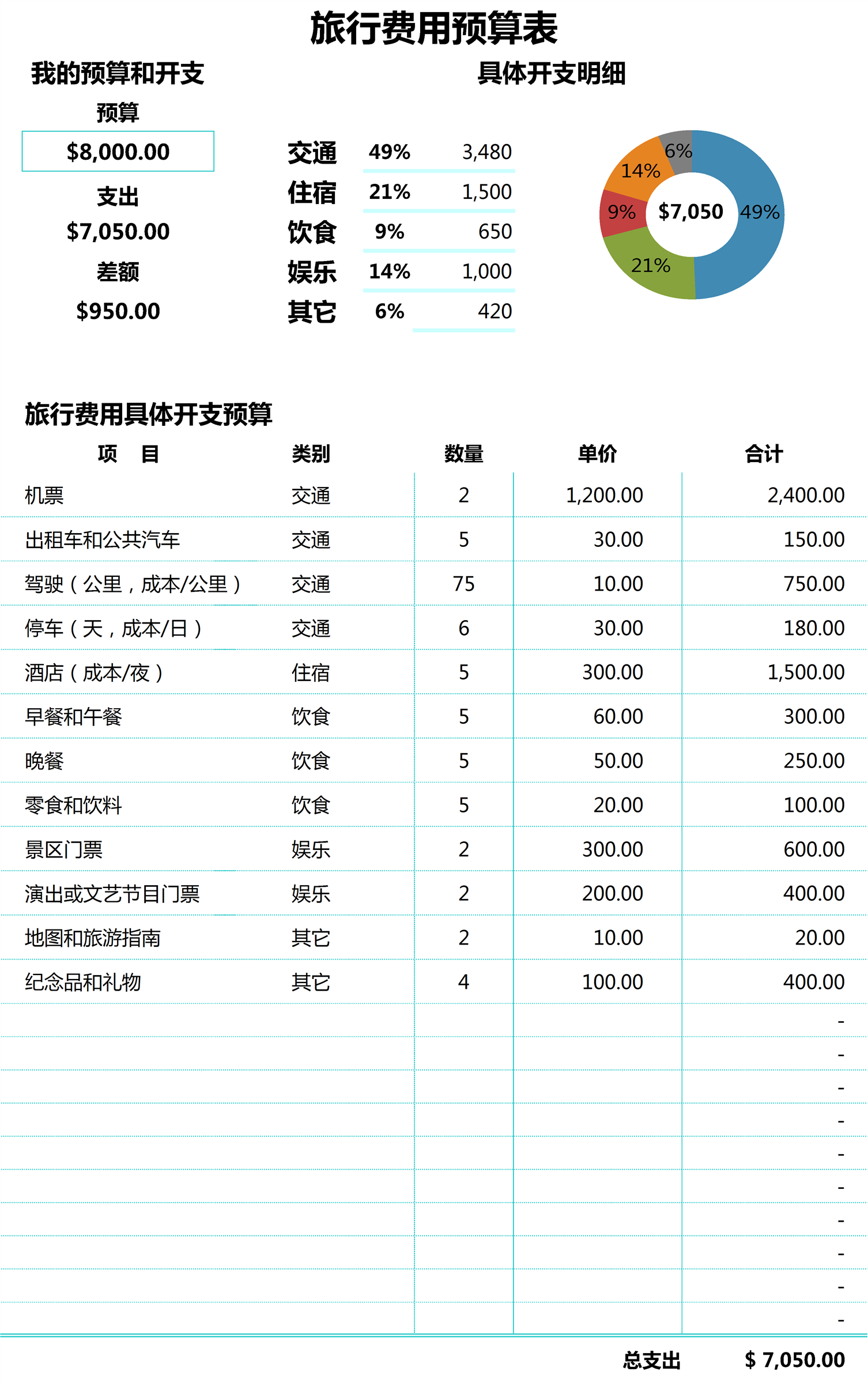 旅行费用预算表