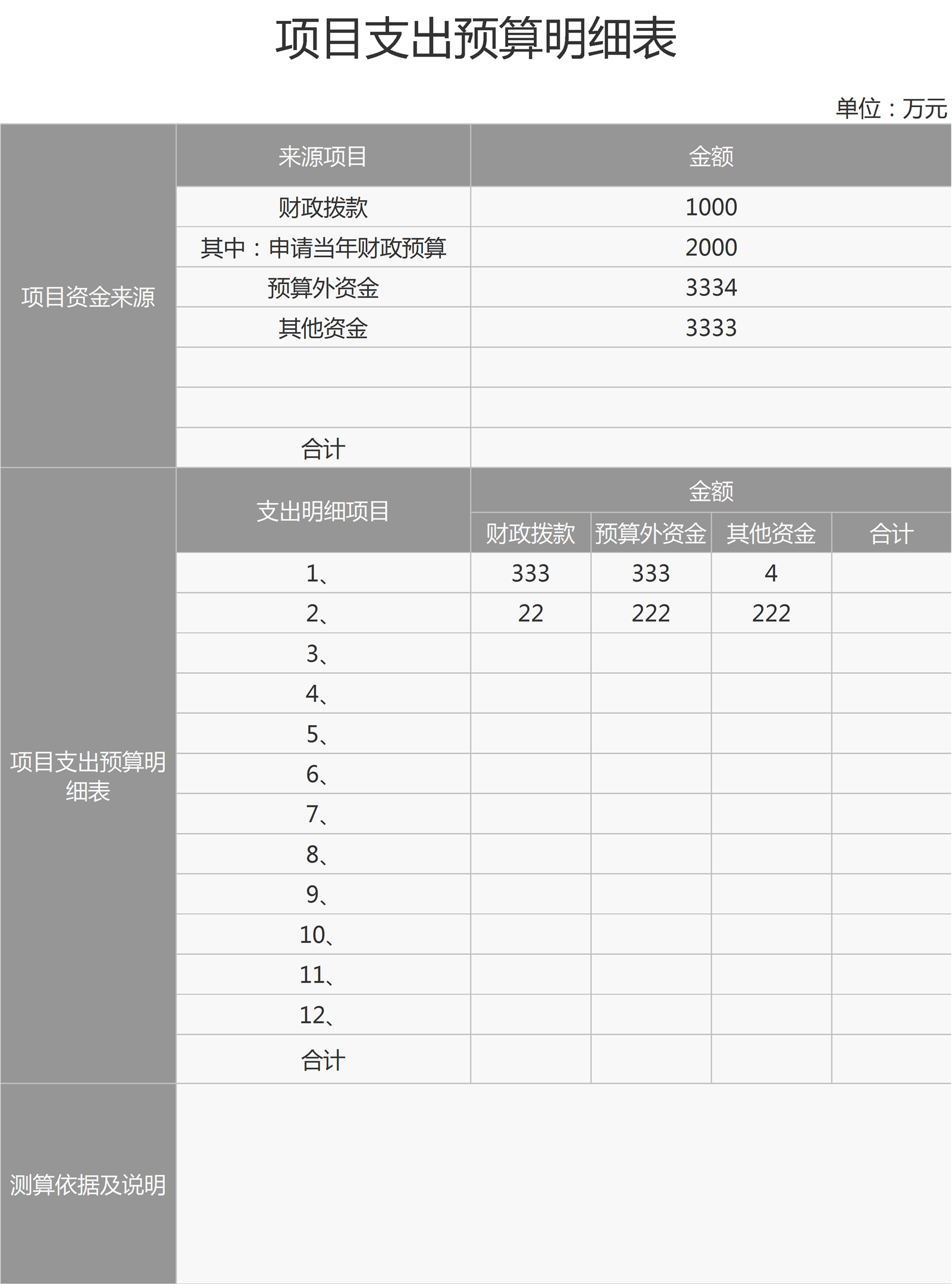 项目支出预算明细表