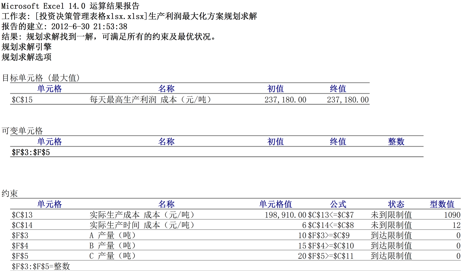 生产利润最大化规划求解
