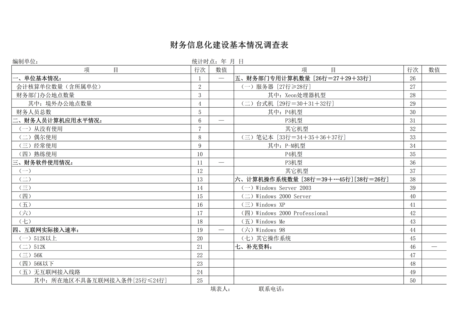 财务信息化建设基本情况调查表
