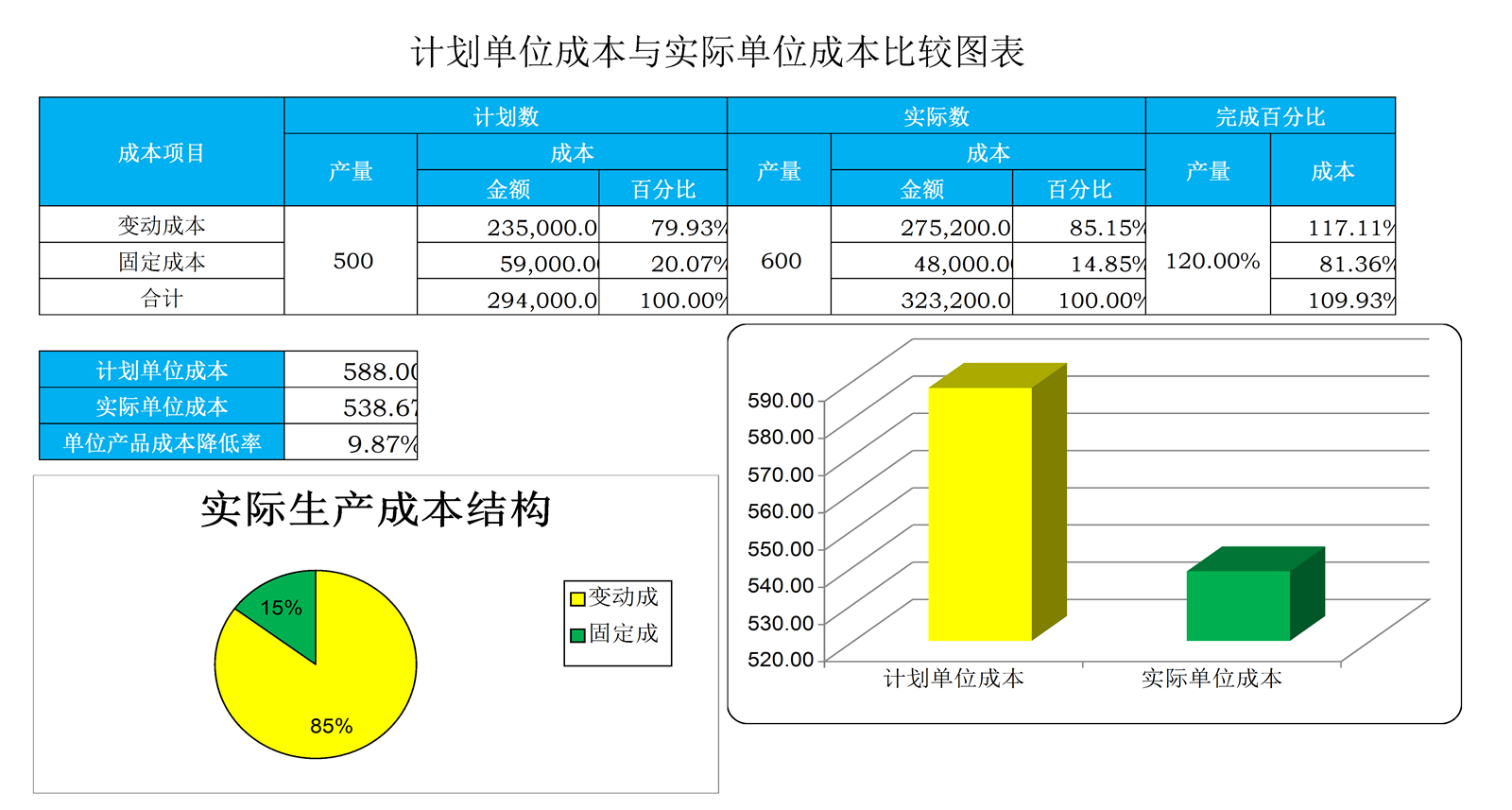 单位成本比较表