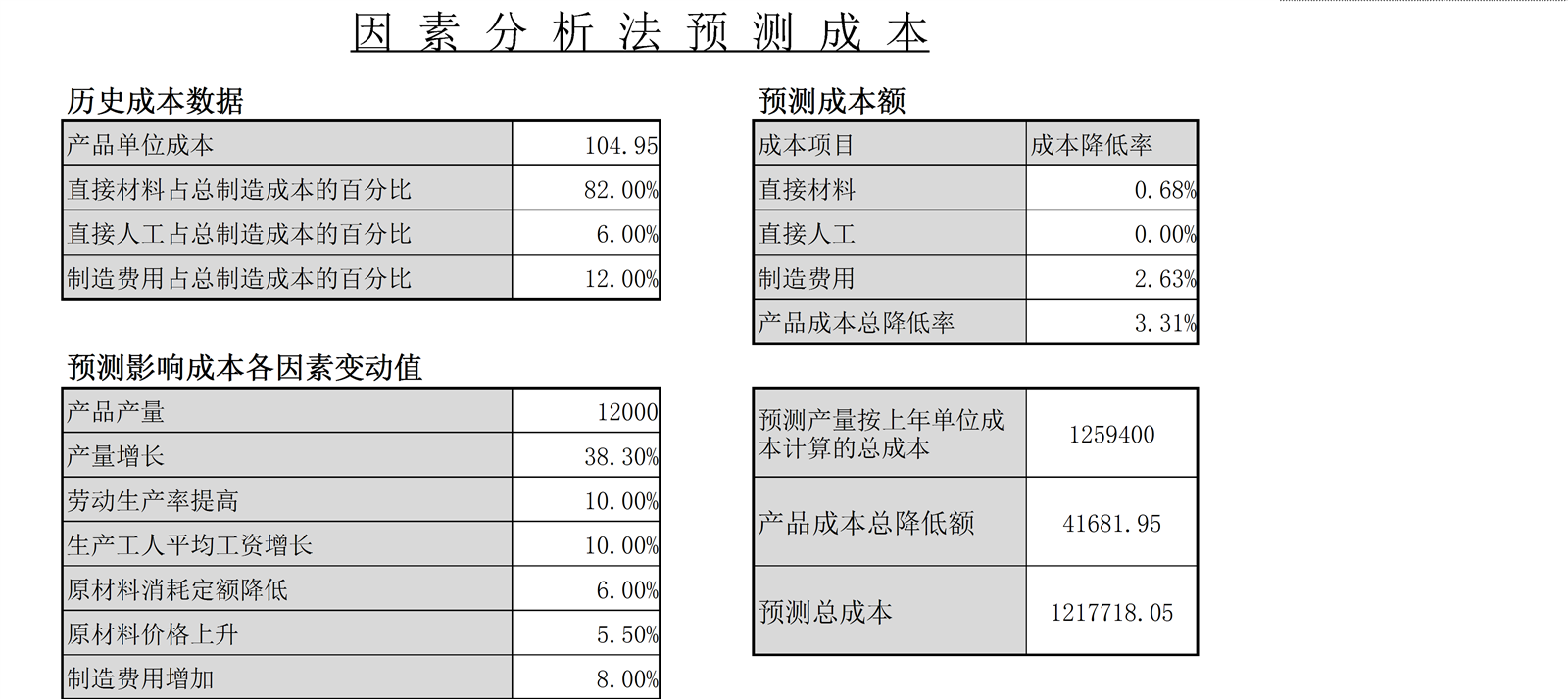 因素分析法预测成本
