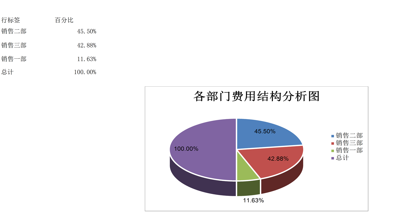 各部门结构费用分析透视图表