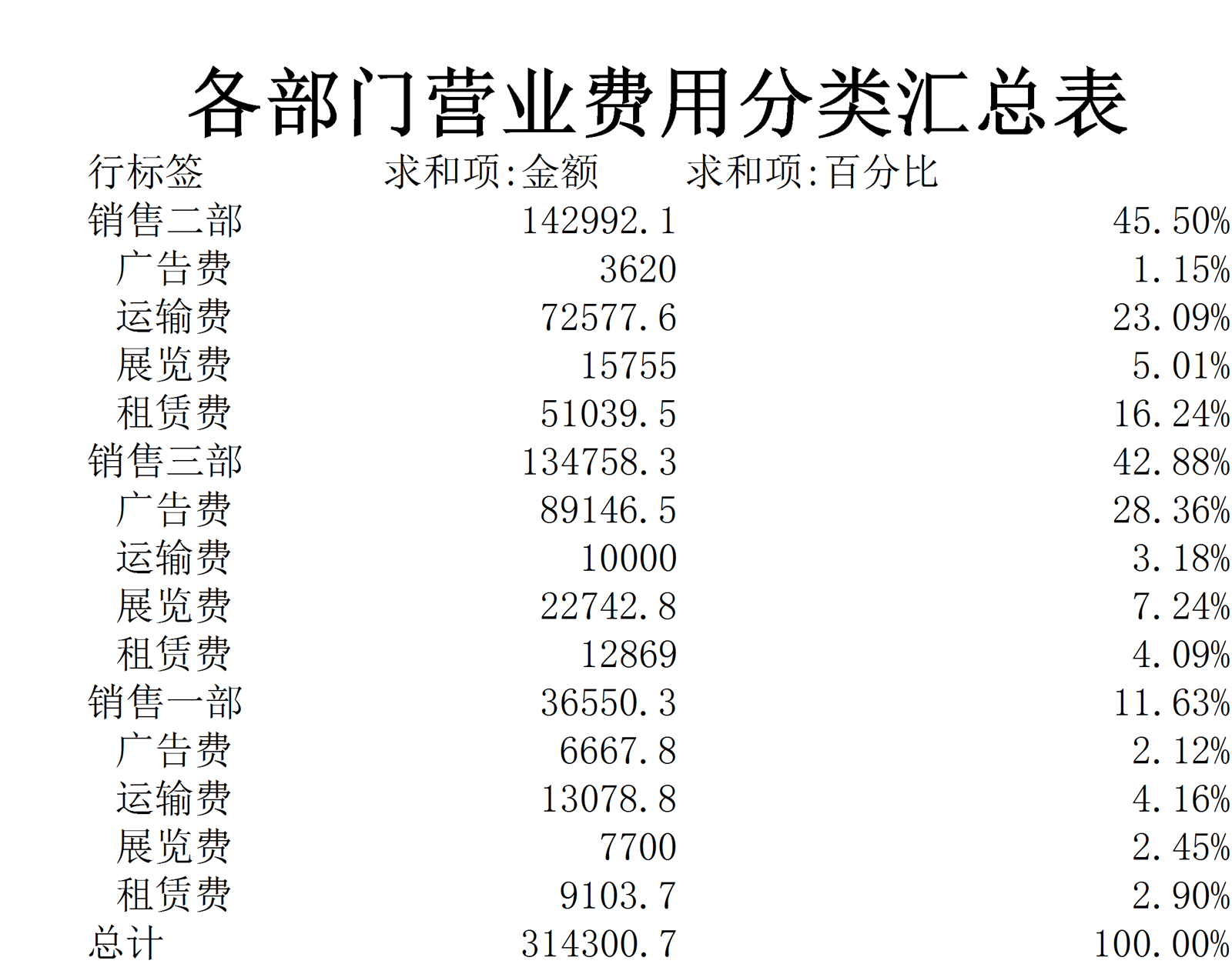 各部门营业费用分类汇总表