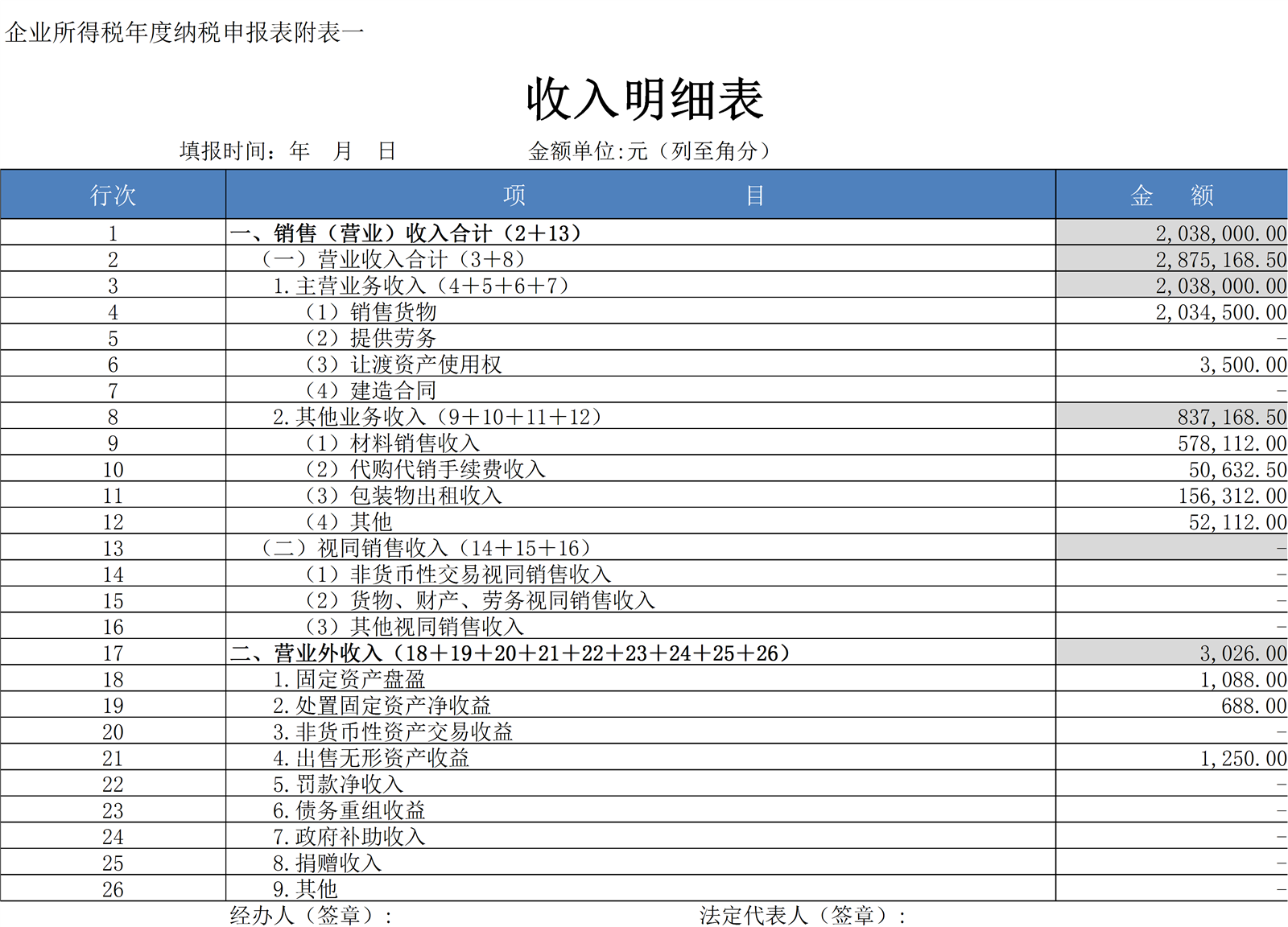 收入明细表