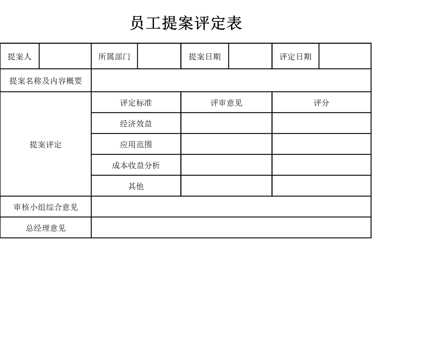 员工提案评定表