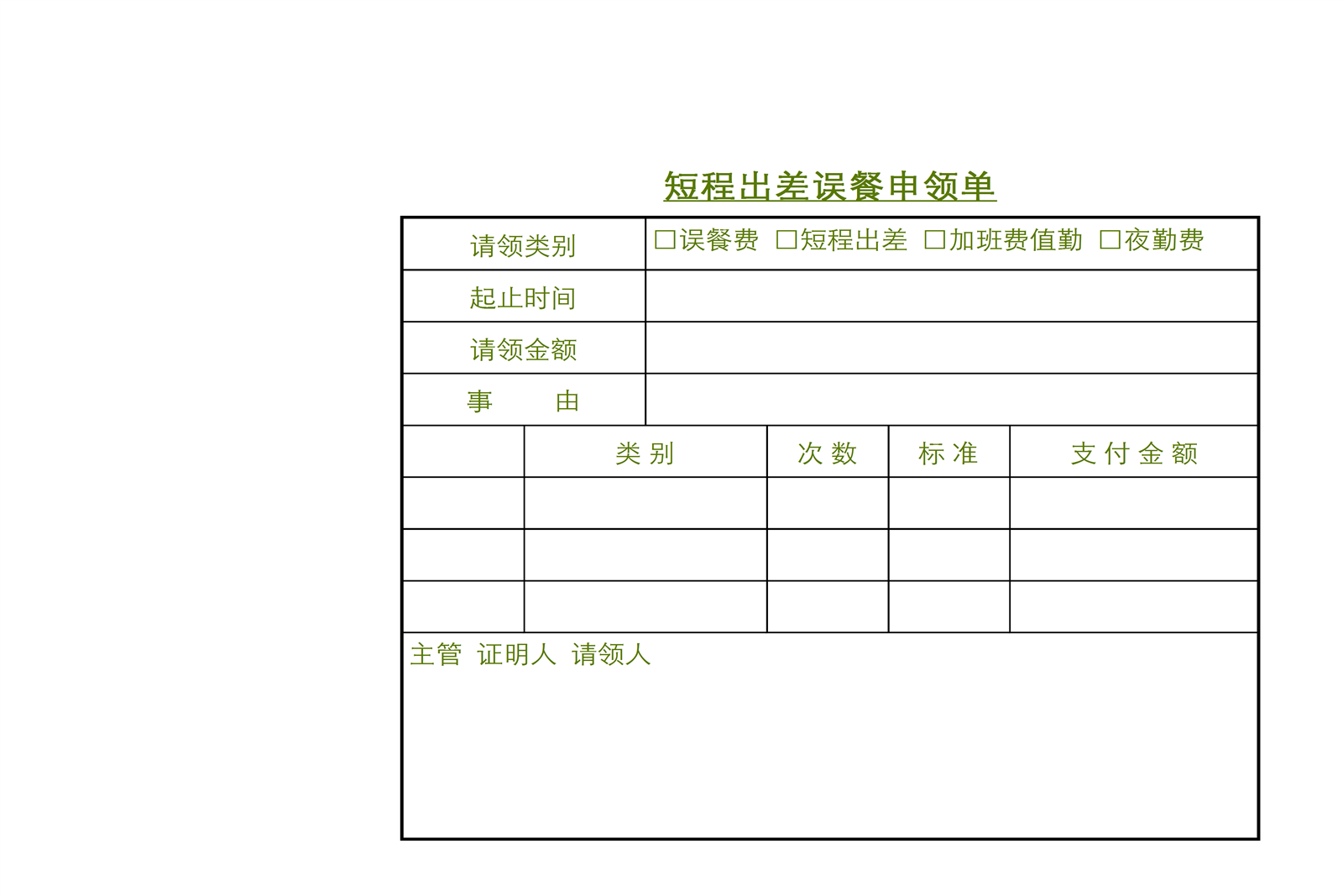 出差误餐费申领单