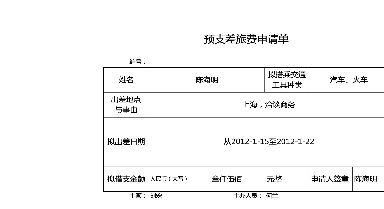 预支差旅费申请单