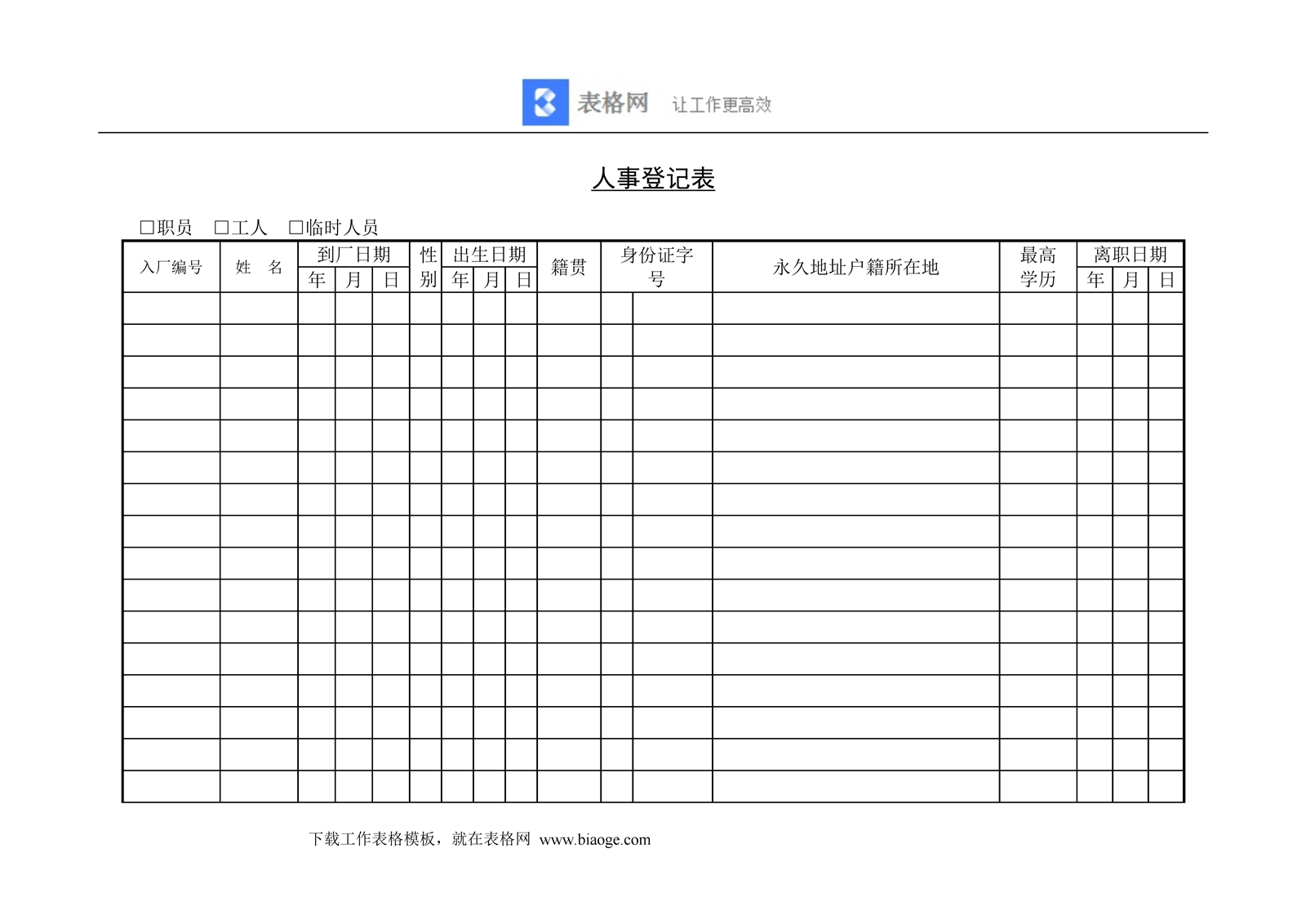 人事登记表