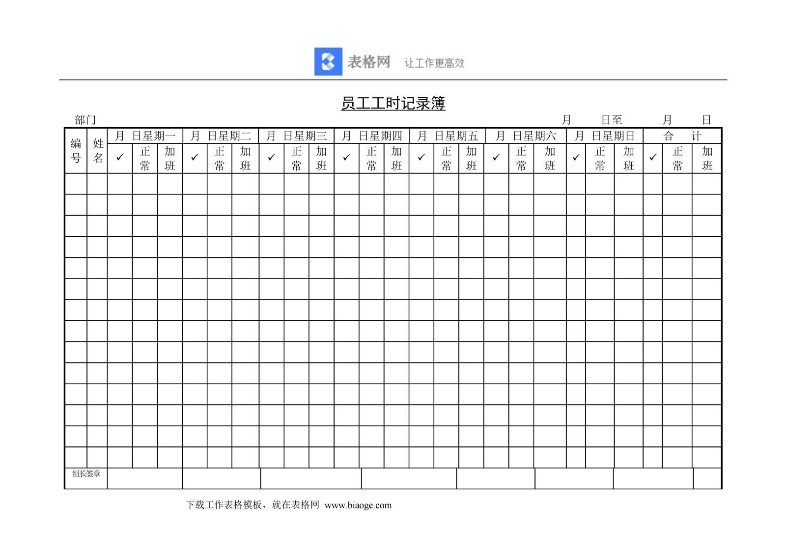 员工工时记录簿
