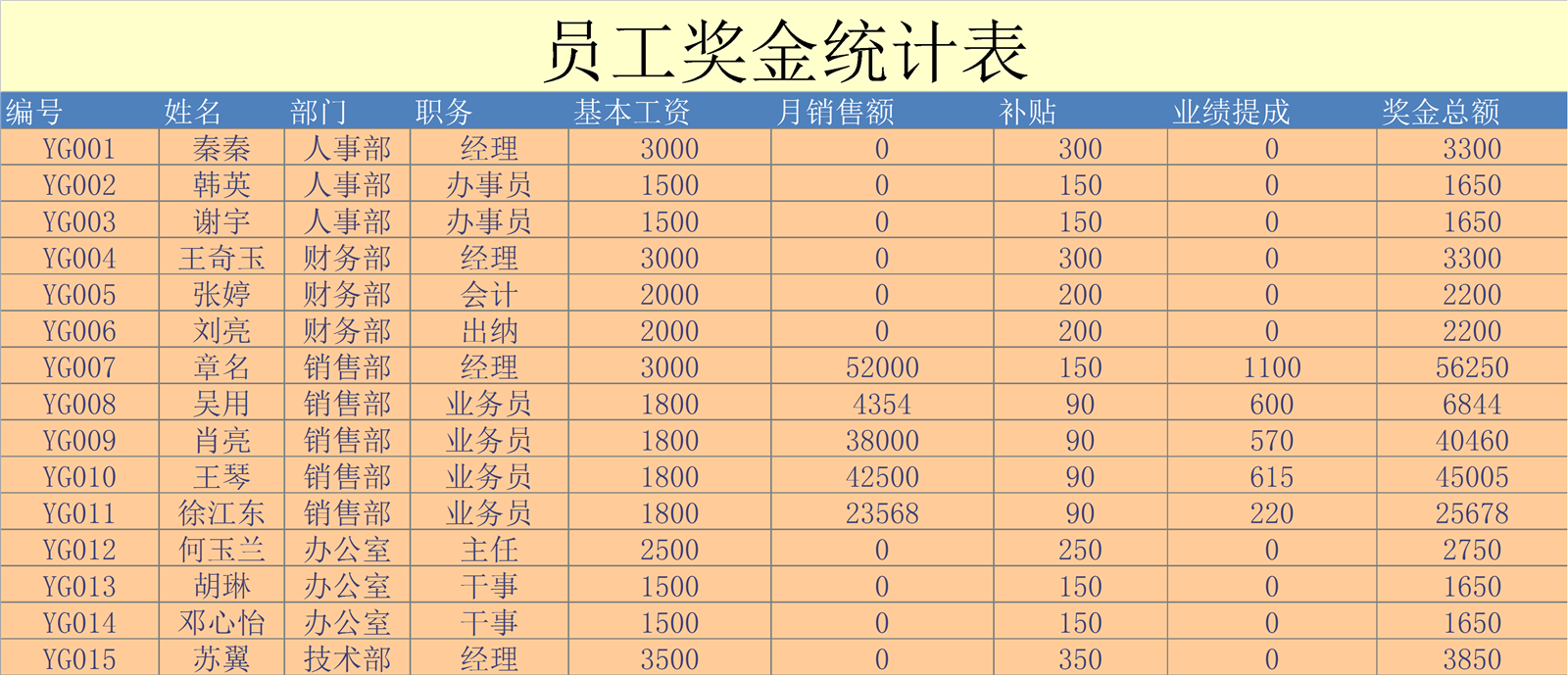 员工奖金统计表