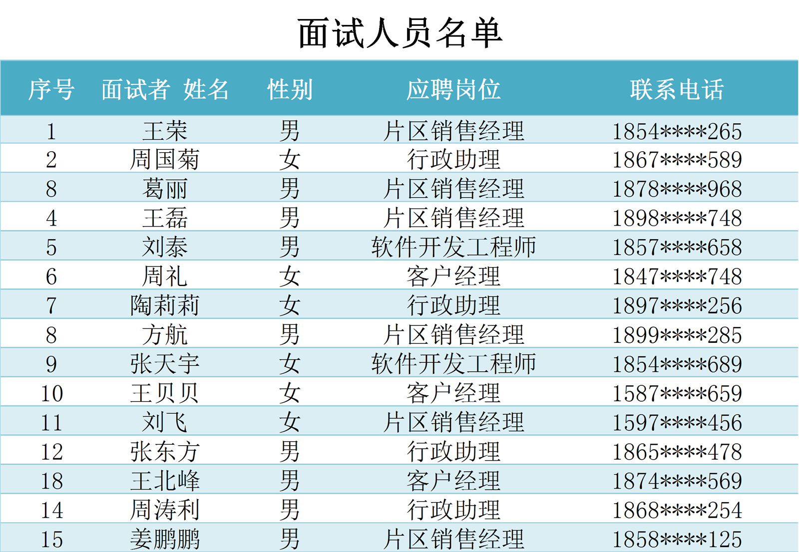 面试人员名单